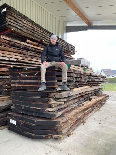 Unsere Eichenbaumscheiben sind beeindruckend stark und groß: Mit über 20 cm Stärke und einem Durchmesser von über 1,7 m bieten sie eine solide Basis für Ihre Tische. Wir haben eine Eichenbohle von 4,5 m Länge, 1,25 m Breite und 65 mm Stärke sowie drei weitere in 3 m Länge und bis zu 1,30 m Breite in 11 cm Stärke auf Lager.